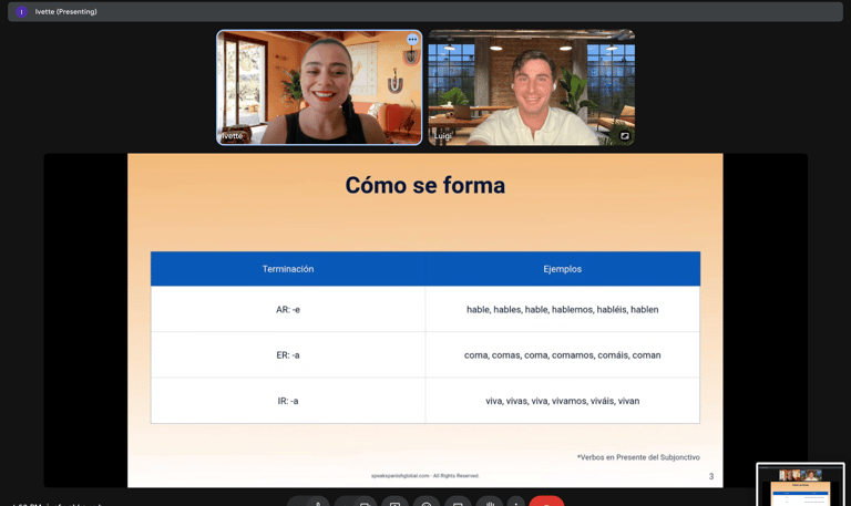 Your first session will be a diagnostic class to assess your Spanish level, strengths, and goals. If there’s a specific topic or skill you want to focus on, we’ll tailor lessons around it.
